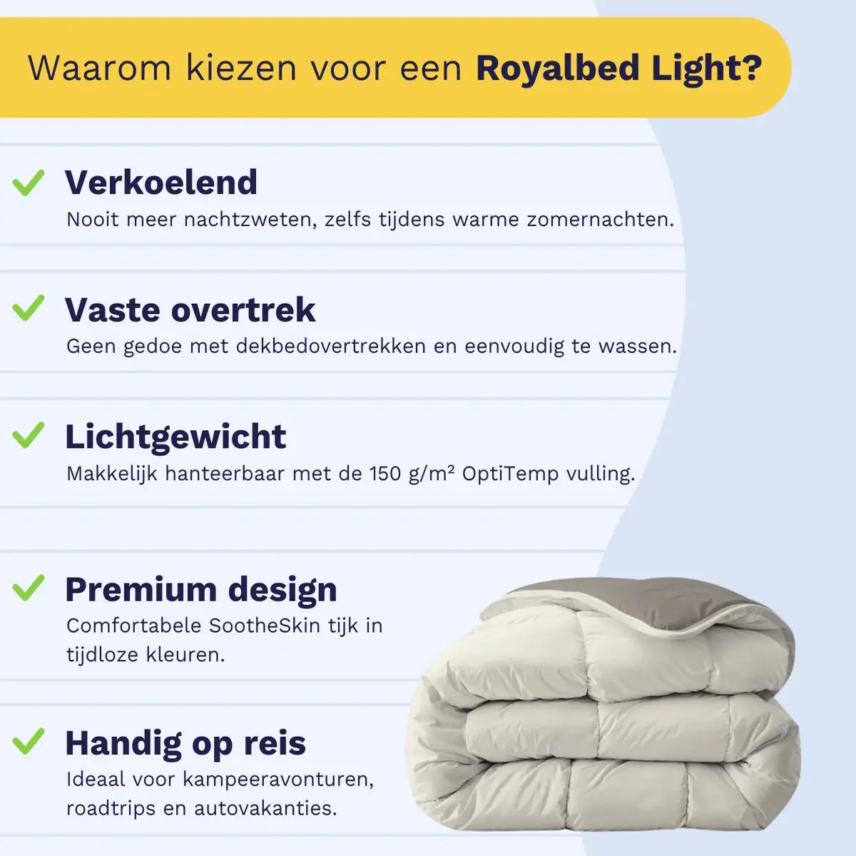 Ontdek het Zelesta Royalbed Light Tender Grey and Cream 240x200cm. Lichtgewicht, wasbaar, hypoallergeen en sneldrogend. Ultiem gemak én fris slaapcomfort. Bestel nu!