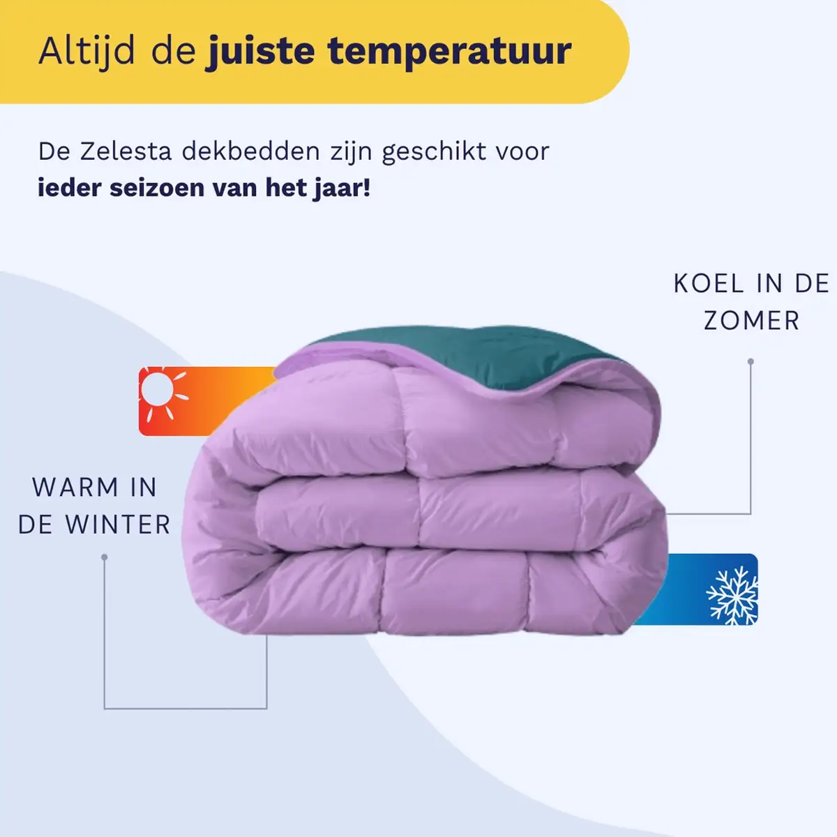 Ervaar ultiem gemak met het hoesloze Zelesta Royalbed Midnight and Lila 140x200cm. Wasbaar, hypoallergeen en geschikt voor elk seizoen. Binnen 1 minuut je bed opgemaakt!