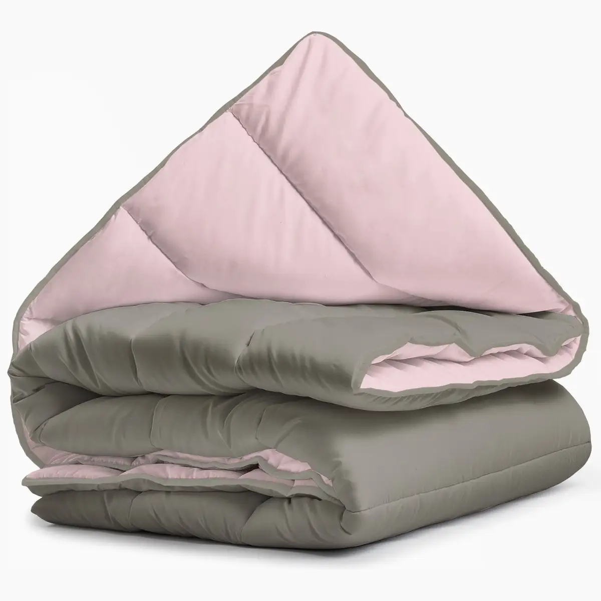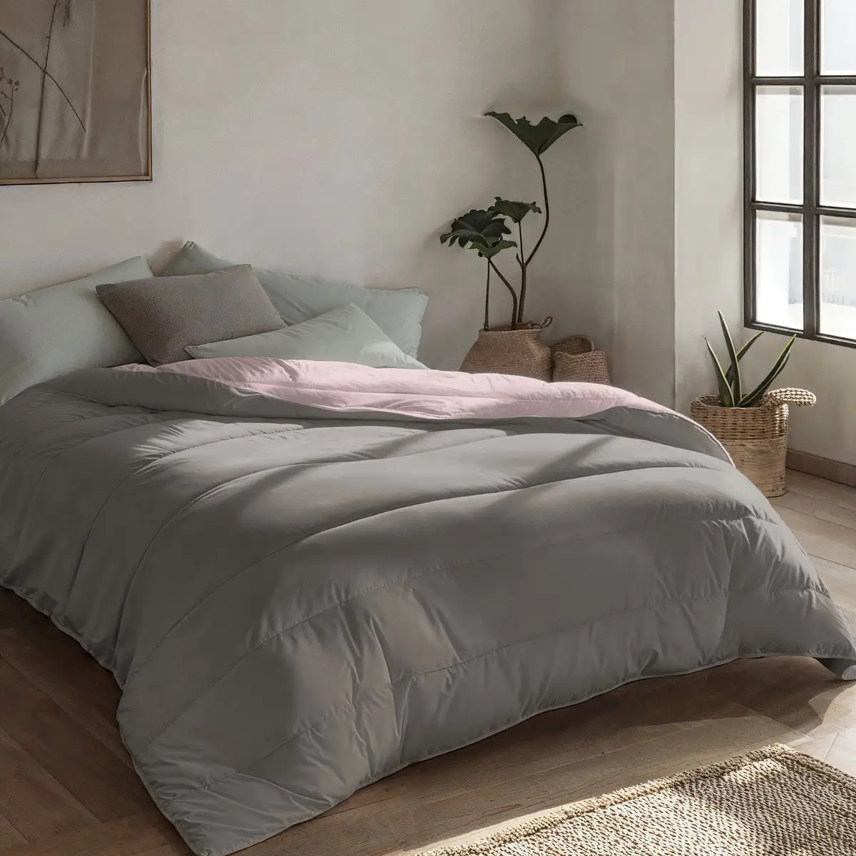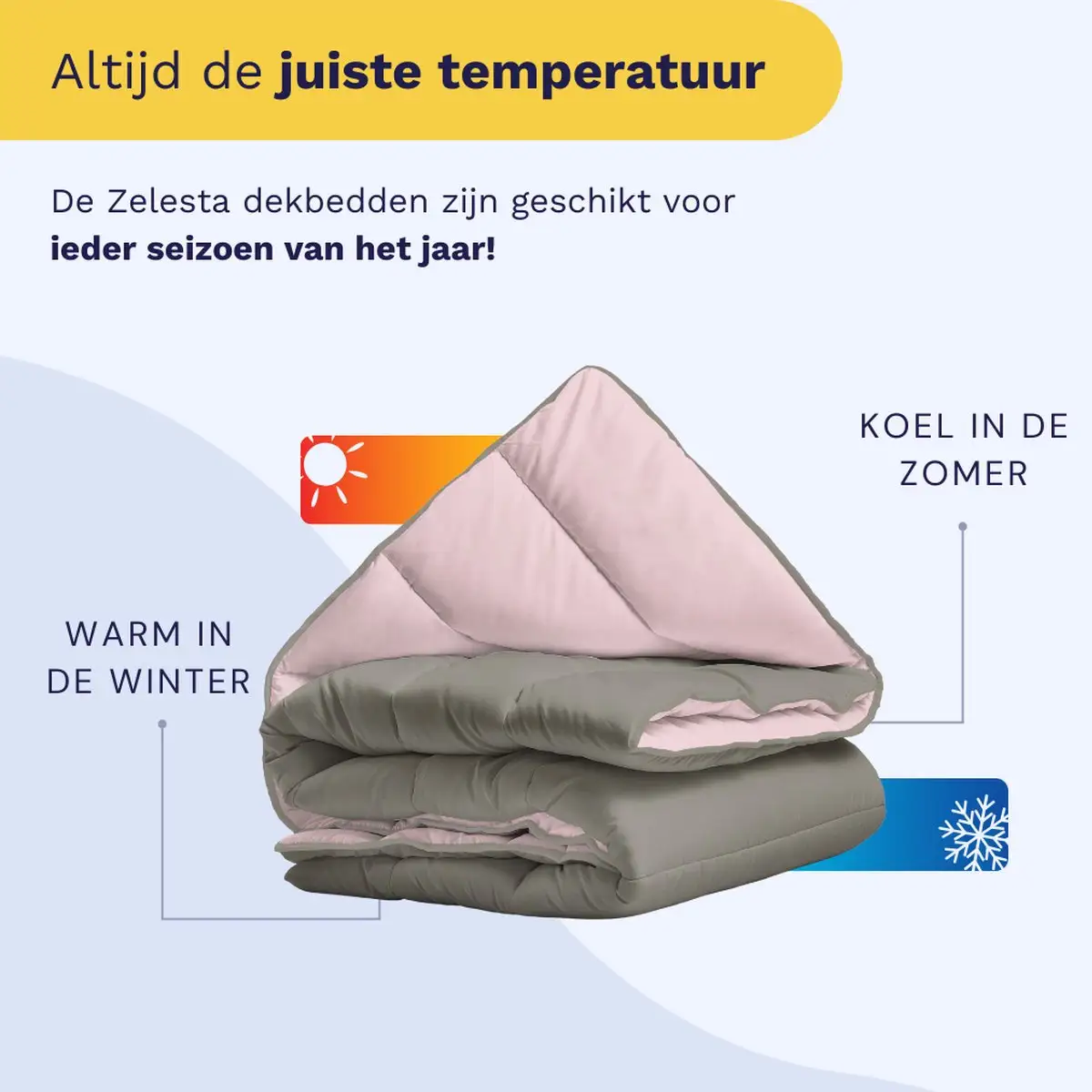 Ontdek het gemak van het Zelesta Royalbed Pastel Pink and Tender Grey 200x200cm. Wasbaar, hypoallergeen en all season comfort in één. Geen overtrek nodig!