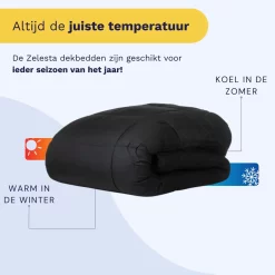 Ontdek het gemak van het Zelesta Wonderbed 4 Seizoenen Black 240x200cm. Hoesloos, wasbaar en hypoallergeen. Binnen 1 minuut opgemaakt, het hele jaar door comfort.