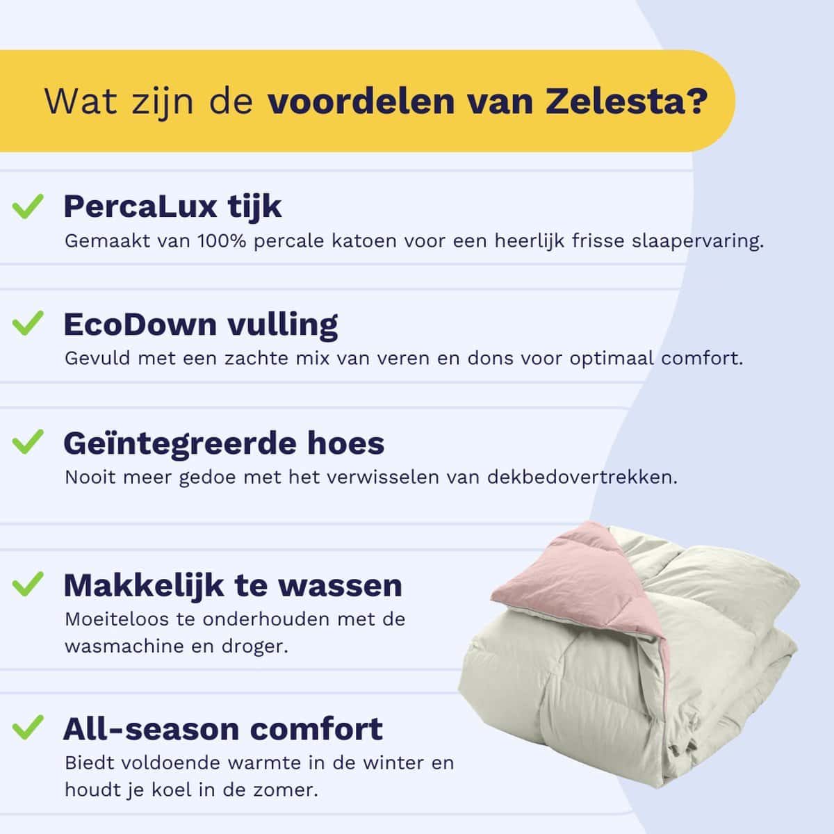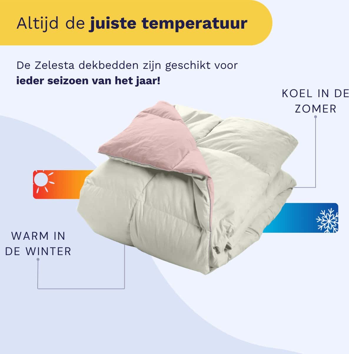Ontdek het Zelesta Wonderbed Cotton Down Pink and Cream 200x200cm. Wasbaar, hoesloos en hypoallergeen. Snel opgemaakt, koel in de zomer, warm in de winter.