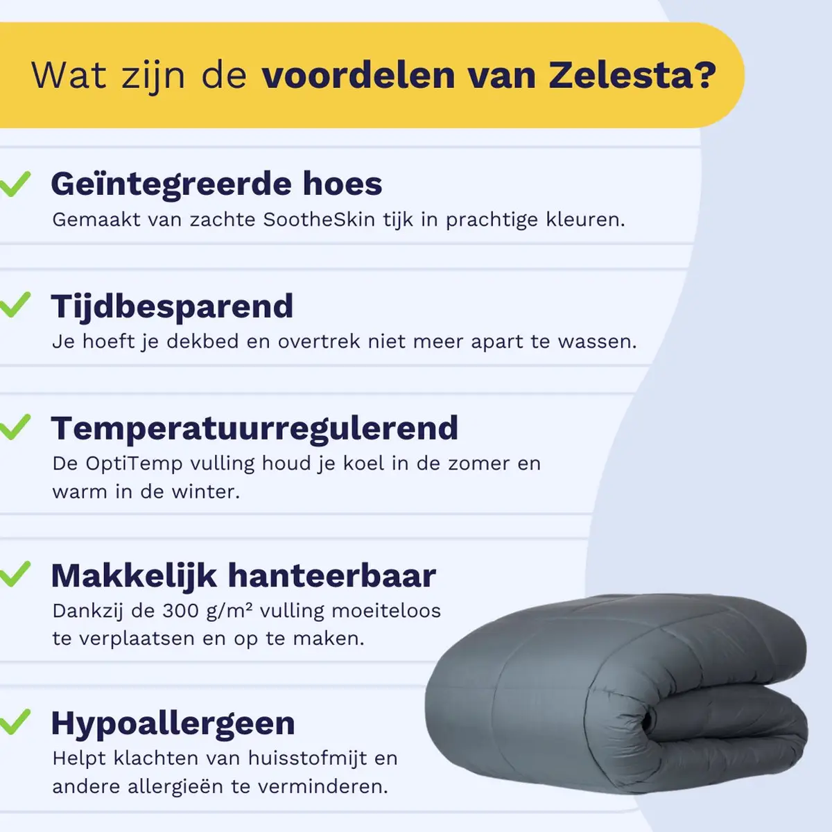 Ontdek het Zelesta Wonderbed Grey 200x200cm een wasbaar hoesloos dekbed, hypoallergeen, snel droog en perfect voor een gezonde nachtrust, zomer en winter.